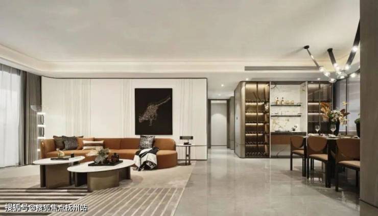 走进室内,宽景平层大宅的空间尺度与细节打磨同样令人惊艳。天弧穹顶借鉴姑苏园林的经典弧线,流线岛台参考园林月亮门设计,雅韵圆角融入团扇的温润意象,每一处设计都藏着对苏州文化的致敬。