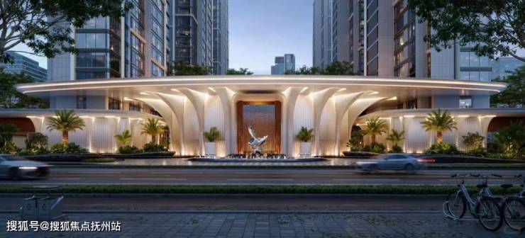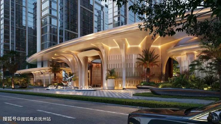 元序采用大面玻璃幕墙,通过搭配仿石铝板、釉面陶板等高端材质,组成“超流体屏”;将天然石材与高迪曲线完美搭配,虽为现代风,却无绝对直线棱角,自然形成艺术感极强的建筑单体。