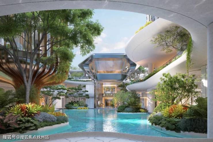 作为未科核心首个全抬板社区,元序通过五重景观环岛,将园区整体抬升约5米,2楼相当于普通住宅4楼,架空层最高达约6.3米。得益于此,业主可穿梭于三层立体式景观水院,超2500㎡景观水系之中,层叠错落间,仿佛行走于“悬浮于城上空的绿洲”;