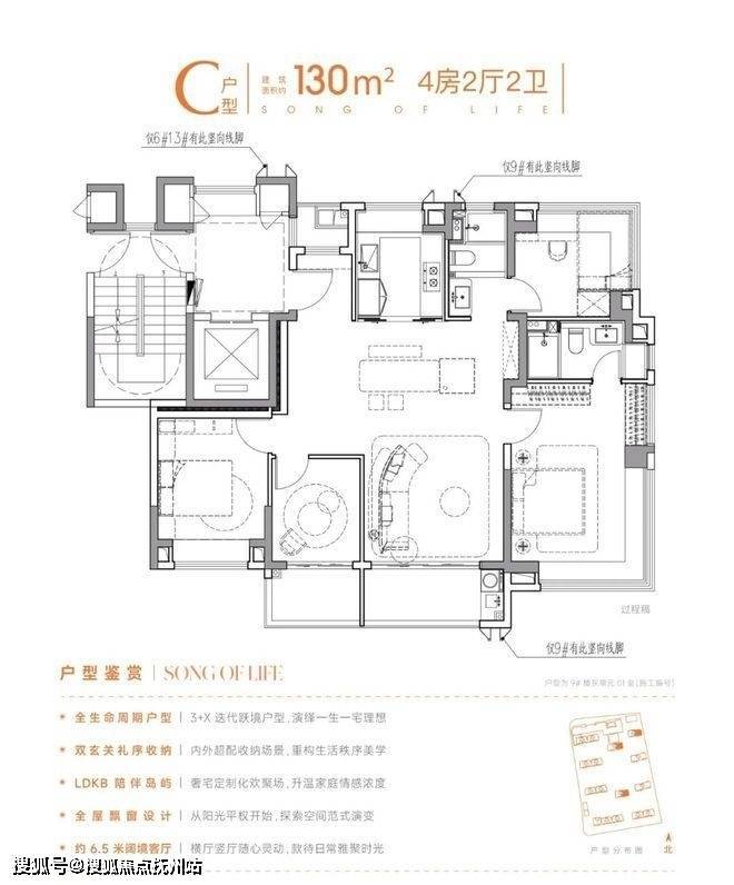3+X 灵动空间可根据需求改造成书房、儿童游乐区或老人房,满足二胎家庭、三代同堂的居住需求;LDKB无界通厅与X空间打通后,可形成约6.5米巨幕横厅,朋友聚会、家庭互动都有足够空间;主卧以酒店式套房标准打造,独立衣帽间、南向全明主卫、270°转角飘窗,奢享感拉满;全屋6大采光飘窗,让每个房间都明亮通透。