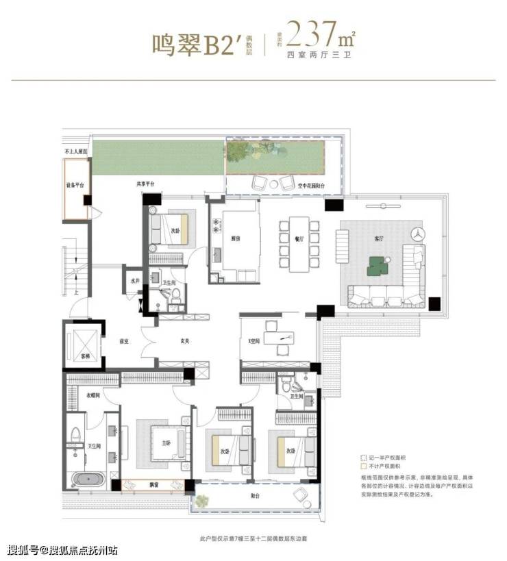 通过“全景舱”无柱转角空间设计,大宅内部全景落地窗如一幅展开的画卷,将约270°的江景视野尽数纳入。例如,鸣翠B2’建面约237㎡,进门尺度玄关设计,颠覆性270°环幕无界开阔餐客横厅,加上南向空中花园阳台,让空间完全打开,成为家族共鸣安放之地。