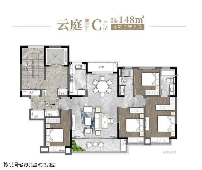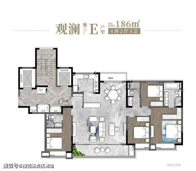 部分户型具有标准层高设计,户型方正,空间使用性高,有独立玄关提升隐私性。4 室的设计适合改善型人群,2 卫的配置可避免抢卫生间的尴尬,保证主人生活的私密性。餐厅和客厅无缝连接,营造出局部大空间的体验。房间动区简约大气,提供舒适的生活娱乐氛围。部分主卧采用套房设计,扩大了卧室面积,配有独立的主卧卫生间,提升了主人的居住体验。部分户型的主阳台朝南,若装配落地窗,采光较好,且户型朝南的房间较多,可充分享受 “冬暖夏凉” 的舒适体验,同时南北通透,厨卫全明,室内采光无死角。