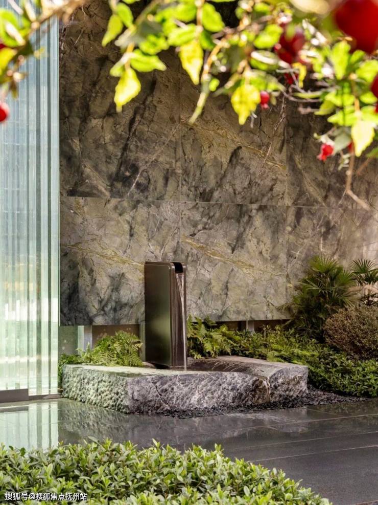 临水垫步,衔接山水亭廊,使游人置身在小桥流水的闲情中。听泉观瀑,流动的泉水“泠泠”声脆,为空间营造一处观景之地。身处其间,好似漫步山野之间,感受自然间的瀑布流水,繁忙的生活节奏在此得以放缓,享受片刻的宁静与惬意。