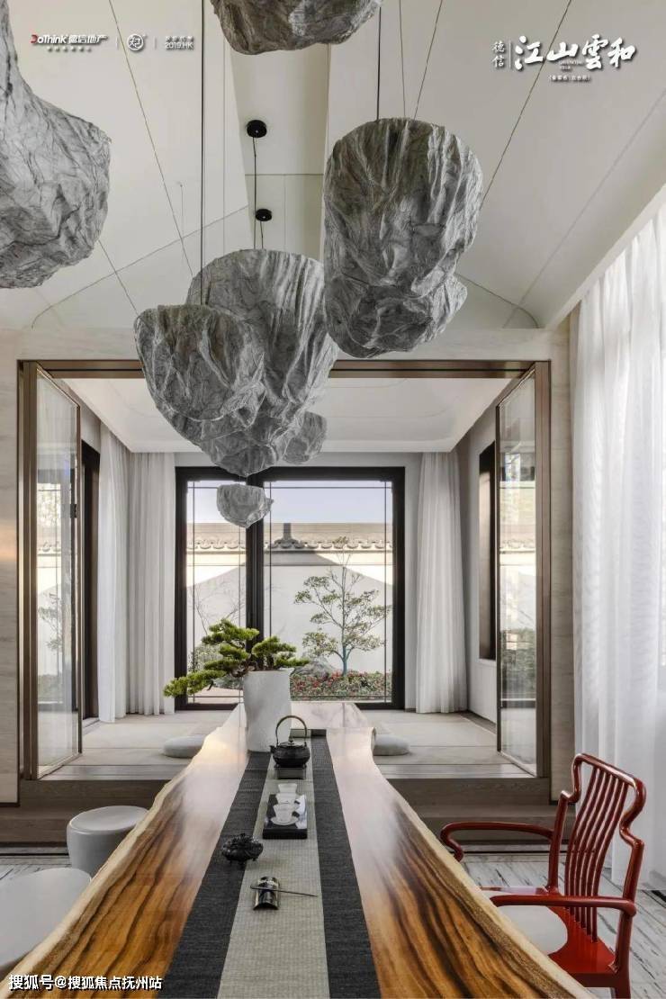 居室与庭院的过渡表达,在叠山理水之间,于此超越对立,圆融无碍,呈现出当代居住艺术与园林相互渗透融合的自在,成为人与自然的连接。人在其中,身心和谐。