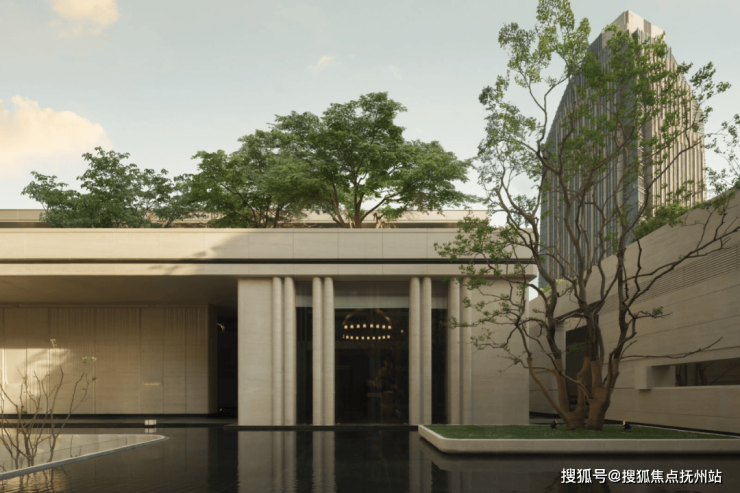 老静安的优雅如何表达,土地有自己的答案。地块红线呈不规则的多边形,整体蜿蜒曲折,甚至在地块中还规划了一条横穿地块,需要24多小时对外开放的公共通道。项目因势利导,在地定制——地块抬高,堆坡造园。将北侧1#、2#楼整体抬高3.6米,做了下穿公共通道设计。同时,北高南低错落式布局,将领馆花园的故事落实到场地之上,打造一座“梧桐浓荫下的领馆花园”。