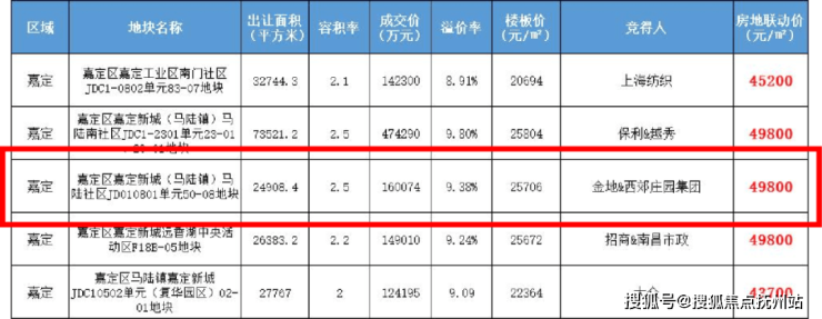 7月26日,今年第二批土拍中,嘉定共有5块宅地成功出让。其中,嘉定区嘉定新城(马陆镇)马陆社区JD010801单元50-08地块由上海西郊庄园企业管理咨询有限公司&太仓鑫涛房地产咨询有限公司通过一次性报价,以16.01亿元竞得,楼面价2.57万元/㎡,溢价率9.39%。房地联动价4.98万/㎡。