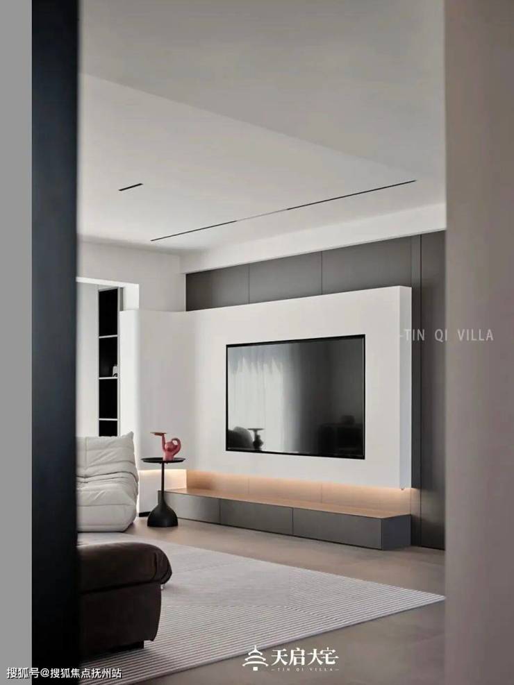 ◆敲掉客厅多余的阳台墙体,扩大空间的使用面积,并利用多功能组合沙发,缩减方形空间的单一感,能够根据需求随时调整格局,更能彰显大平层空间的奢阔与舒适。