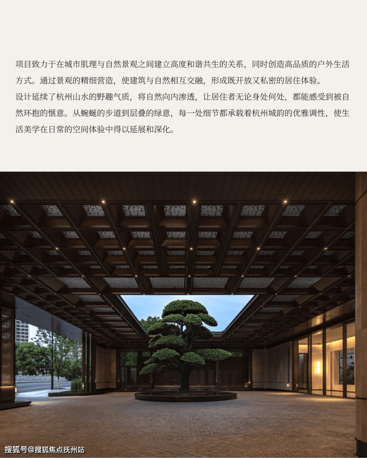 整个建筑群的布局沿着奔竞大道展开,由四栋塔楼和附属的酒店配套裙房共同组成。这个 26 万平方米的综合体项目,由七位行业大师联袂打造,其设计的核心理念是将国际化大师的智慧结晶、艺术性生活表达和杭州本土文化的融合,创新出一个独一无二的“城市会客厅”。
