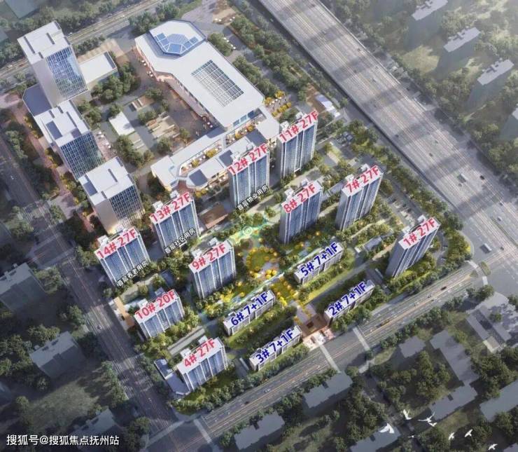 项目规划公示,包含12.5万㎡的住宅和1479㎡的商业,住宅部分共建10栋20-27F高层(1栋20F、1栋25F、8栋27F)+4栋7+1F洋房,总户数1140户。