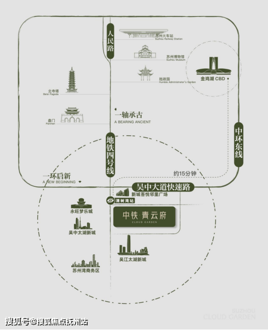 以中轴,见地位!项目占位千年姑苏文脉,以地铁4号线为脊,重构苏州城市中轴价值典范。