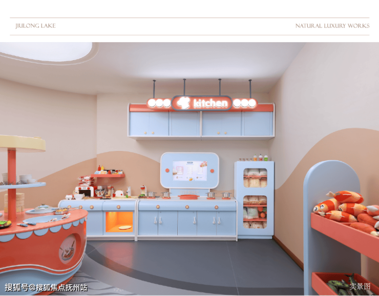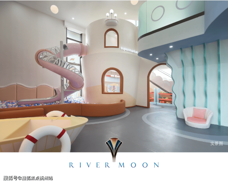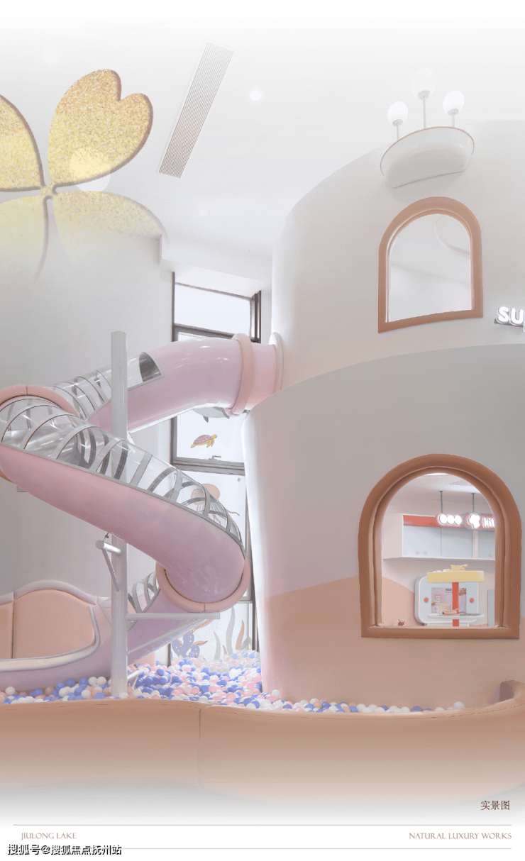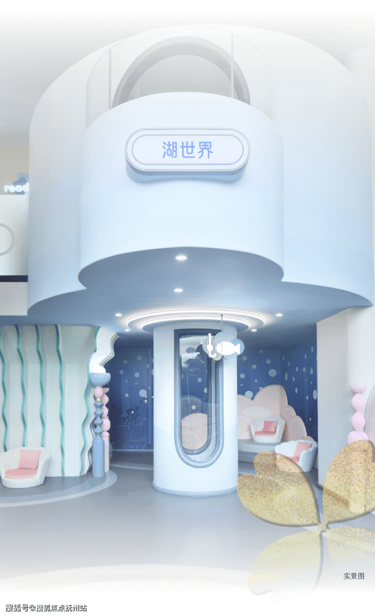 步入湖境月华儿童乐园主题架空层,仿佛潜入了一个充满奇幻与想象的「湖世界」,整体设计以九龙湖为灵感,融合高饱和色彩,勾勒一方“湖底大冒险游乐世界”。