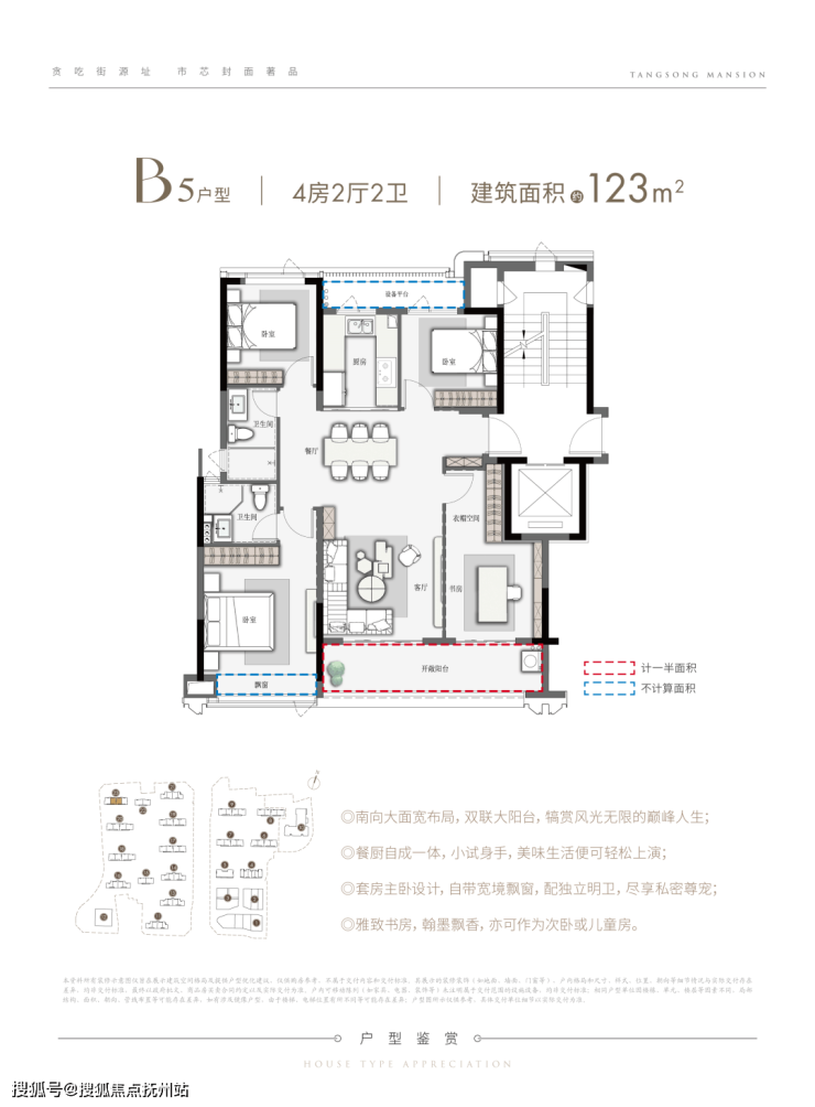 建面约123㎡的户型,从人性的角度出发,拥有购房者理想的“全明空间”、“观景阳台”,“套房主卧”等。功能的多样性,其实也是给一个家庭的成长提供了多样性的需求满足。