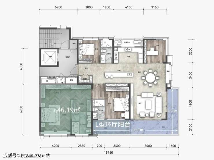 如果说超宽楼距带来的优越采光、中央景观资源的全域风光视角以及社区全维配套的近距享受是7#央景楼座的特有优势,那么建筑面积约218m²的宽幕大平层,则赋予居所更出挑的空间与格局。