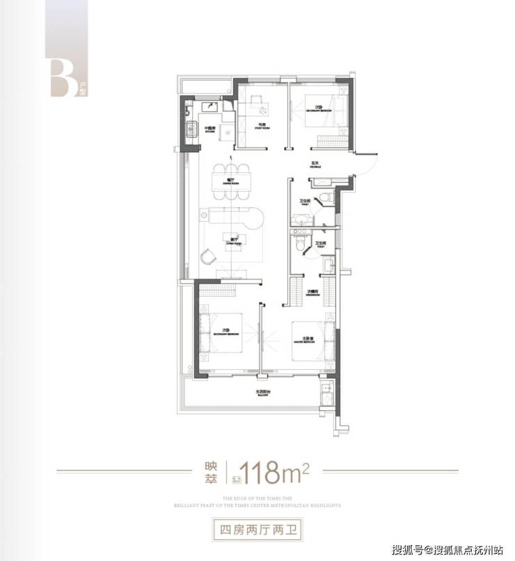 建面约118㎡四房两厅两卫边套,采用当下最流行的大横厅设计,无限延伸待客空间,亲友相聚、朋友畅谈,丝毫不显拥挤。两个南向卧室直连约7.15米大阳台,将绚丽的景观和灿烂的阳光全力收入囊中。
