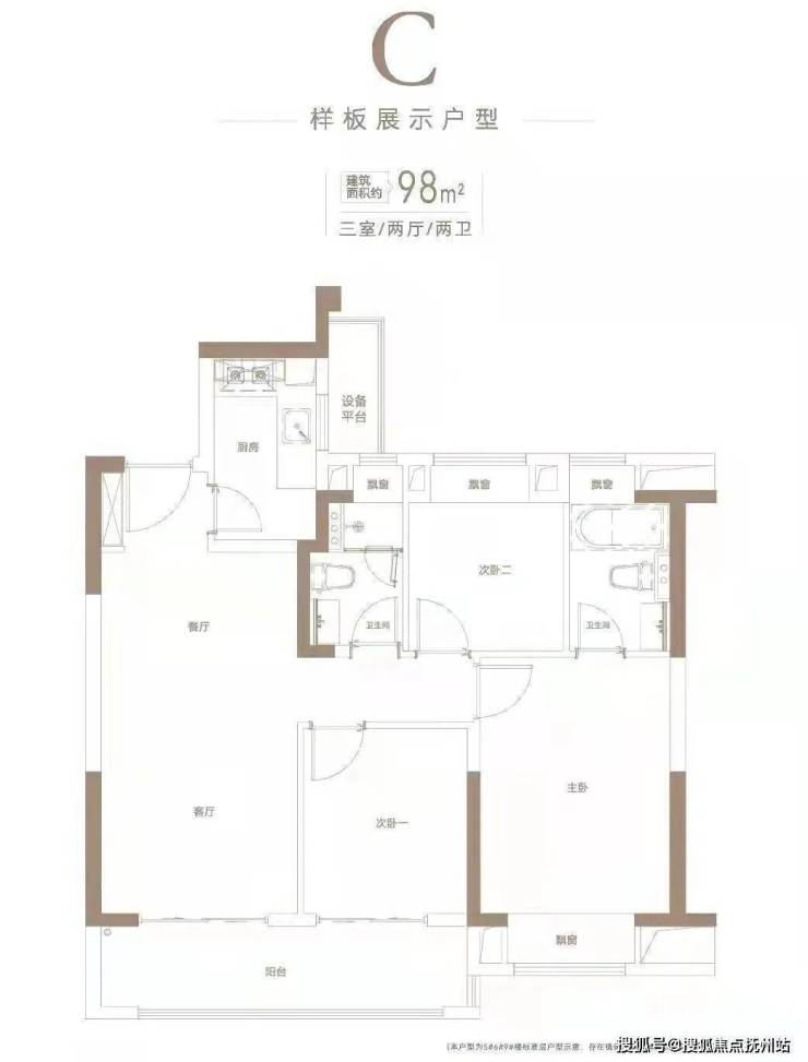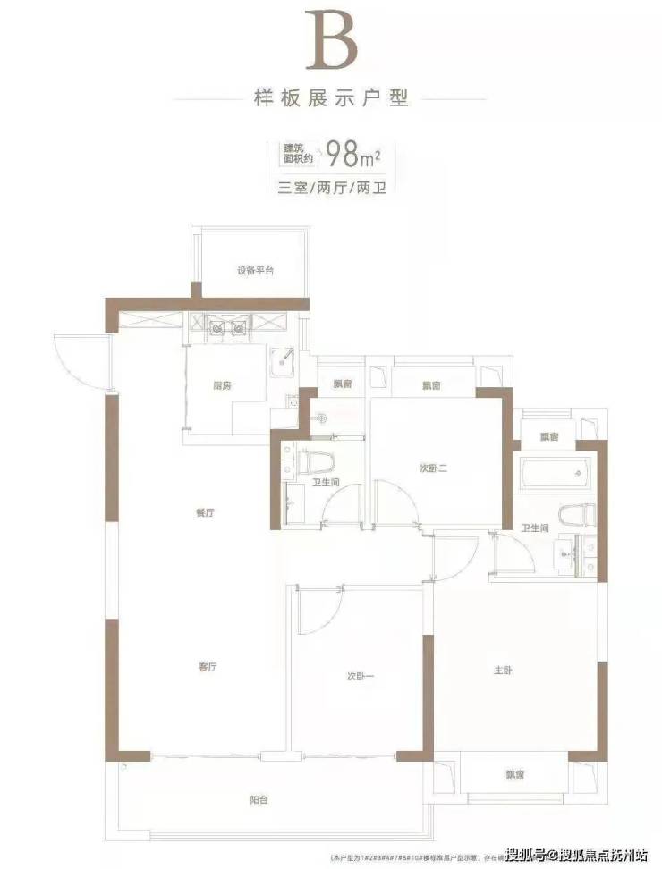 建面约98平3房2厅2卫