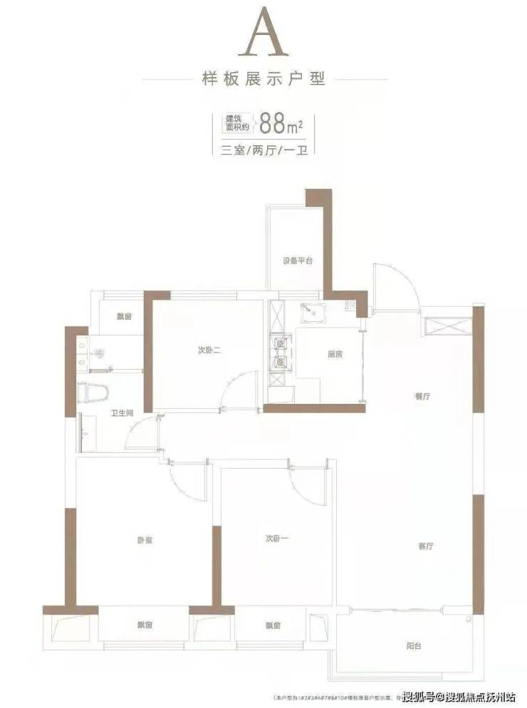建面约88平3房2厅1卫