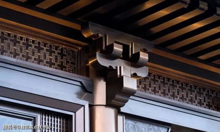 江映月,承袭工匠精神,融合榫卯传统构造手法与工艺,搭配新技术与新材料,以不锈钢金属构筑王府门头肌理,方寸之间精呈艺术美感,赋新千年匠艺,尽显浑然天成的中式风骨。