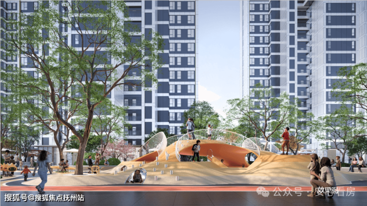 项目打造了全龄段活动趣乐空间、亲子陪伴空间、长者健身空间,以及健康运动环,600M超长跑道串联起各处超1600㎡的乐活运动场地。