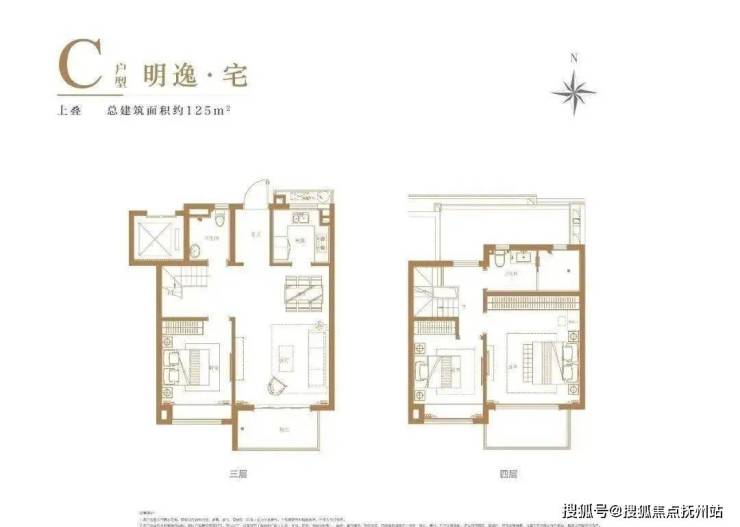 金茂逸墅叠加别墅户型:125㎡、140㎡