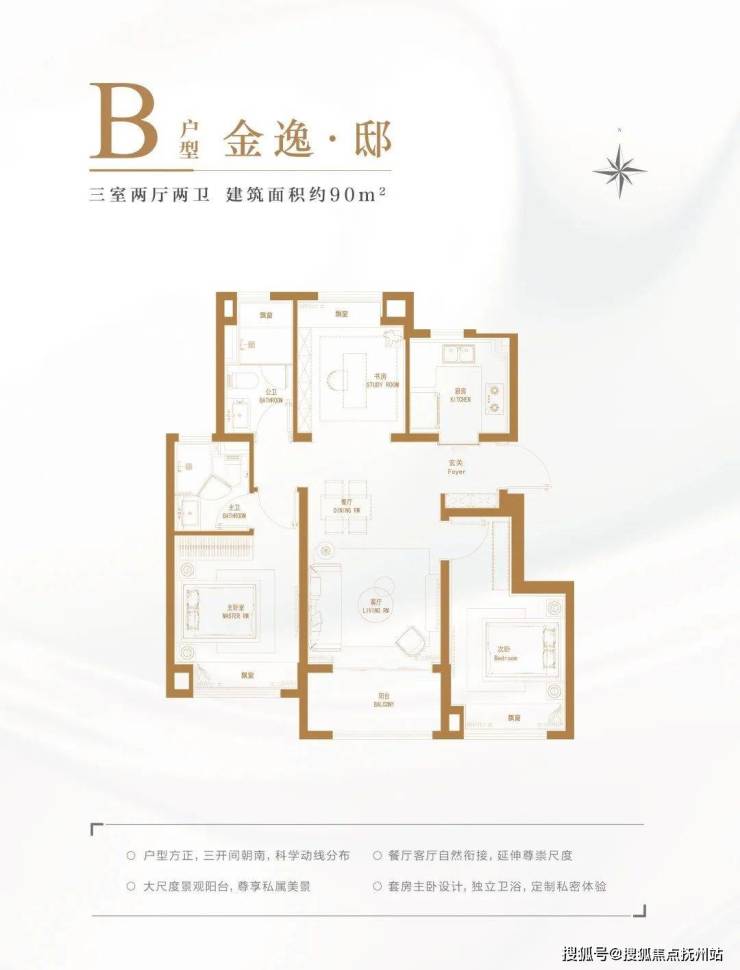 约90㎡做3房2卫,主卧还是套房的设计。这个户型的实用性,堪比100㎡左右的户型,能满足从二人世界到二胎的全生命周期需求。