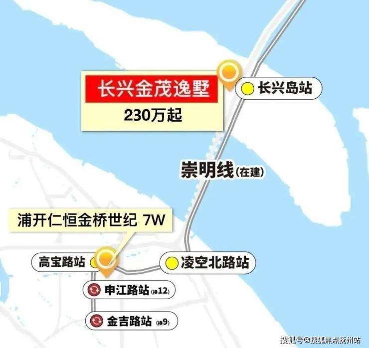 未来有了轨交,从金桥世纪的申江路站3站就能到长兴岛站。而这3站单价差可能达到近4万/㎡。