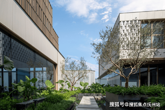 同时,充分运用水景、植物等自然元素,打造公共生活空间、下沉式绿谷庭院、大树聚场、休闲花园、乌桕林秘境五大社交空间。