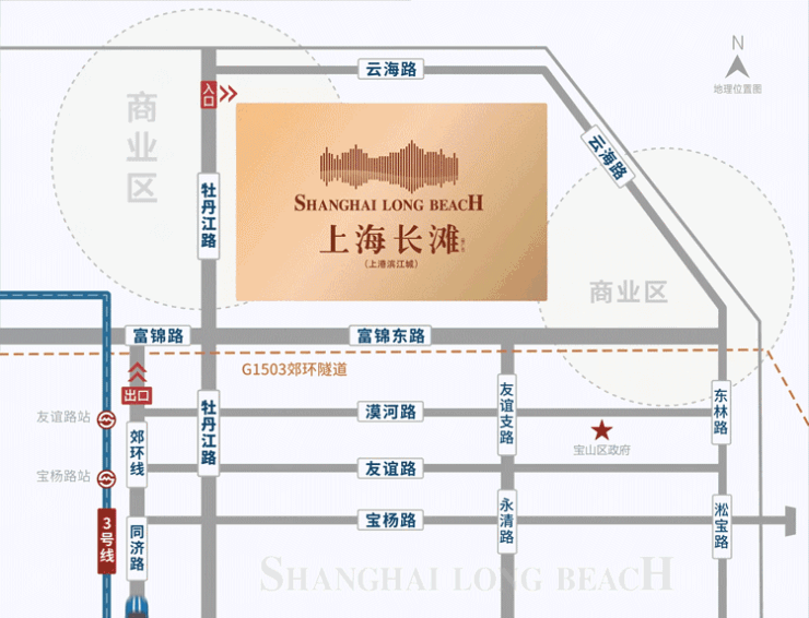 上海长滩的区位优势不仅在于滨江,更在于其“双枢纽”辐射下的高效通勤网络。 轨交+高铁,畅达全城,项目距离轨交3号线友谊路站仅约1.5公里,2027年通车的宝山高铁北站(距项目约3公里)更将接入沪通铁路,实现长三角1小时经济圈覆盖。
