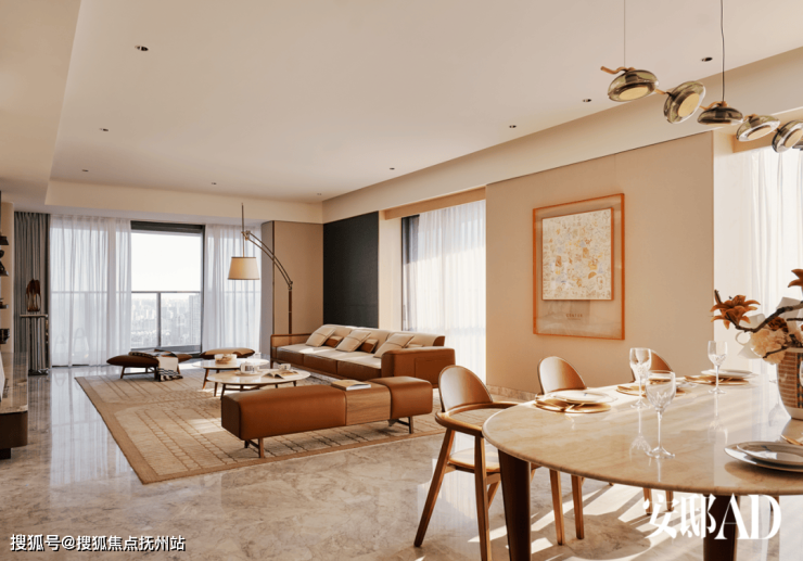 在Patricia Ho Douven打造的370平方米主力户型样板房中,客厅与餐厅呈开放式布局,并拥有“L”形景观面,一侧俯瞰薛福成故居,另一侧则眺望惠山景致。