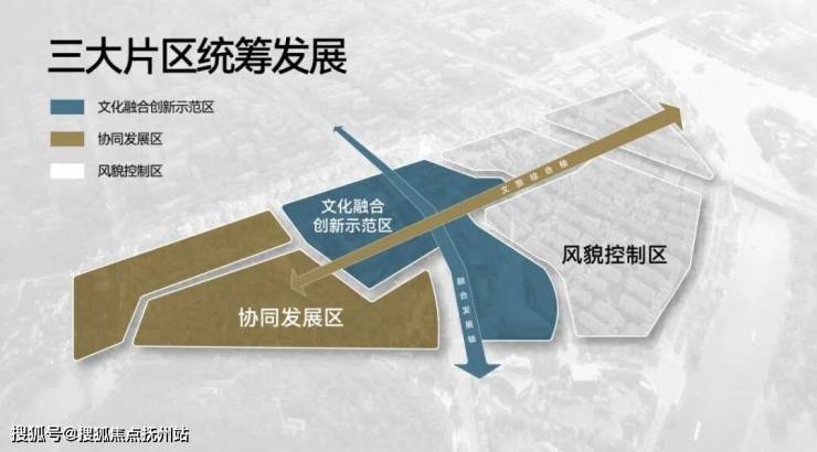 三大片区:文化融合创新示范区(映月里)、风貌控制区、协同发展区