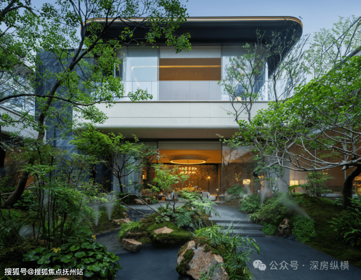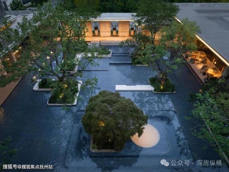 在前场景观体系,苏州招商序又围绕6幕归巢洄游序曲,创新提出将平面景观变成立体景观,通过超600㎡水院与后场归家庭院的嵌套、地面庭院与下沉庭院的垂直呼应、近两百岁名木羽毛枫的点缀,有层次地加强人与人、空间、生活的自然交往,让审美不再是单纯的堆叠奢石,而是进化成阳光下松弛的人。