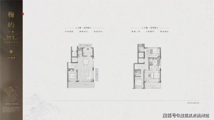 下叠213㎡南向约60㎡私家庭院,5.7米挑高地下室可改造为家庭影院、酒窖;首层双面采光横厅,搭配独立老人套房,三代同堂从容有度。