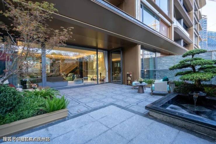 光厅的对面则是下沉式庭院,作为杭州新规后项目,天澜传序府为地上抬板设计,打造多层立体景观花园。