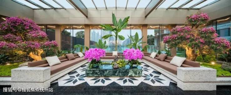 从社区大堂北侧,经由电梯通向架空平台上方的四季穿过园林,从首层大堂轻松归家。