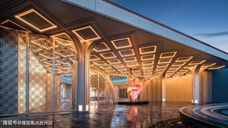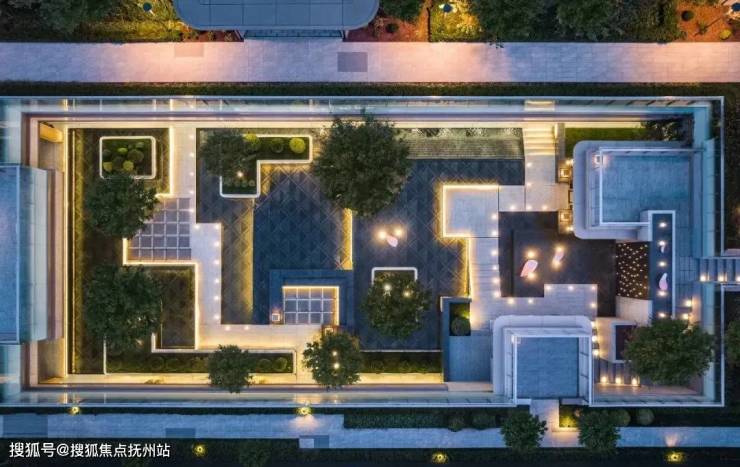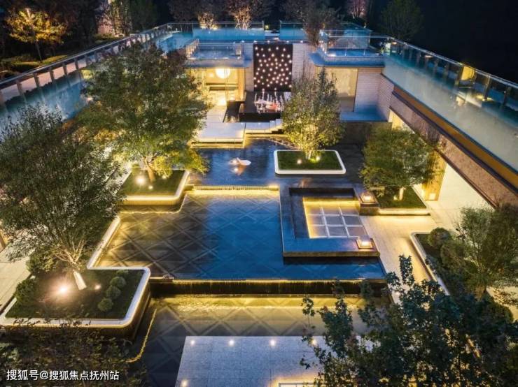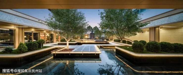 架空平台下,结合下沉庭院、打造奢隐的私家社区生活组团,融合山川河岳的东方园林与私家会所空间,形成生态自然的社区活动空间。