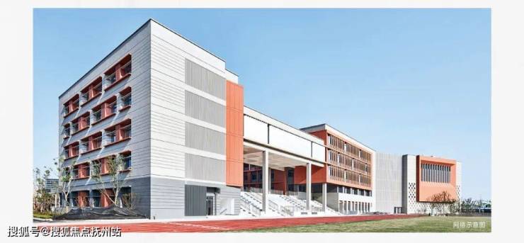 立面美学:现代简洁流畅建筑语言,对称构图,建筑立面整体凹凸,构建横向建筑美学之道。