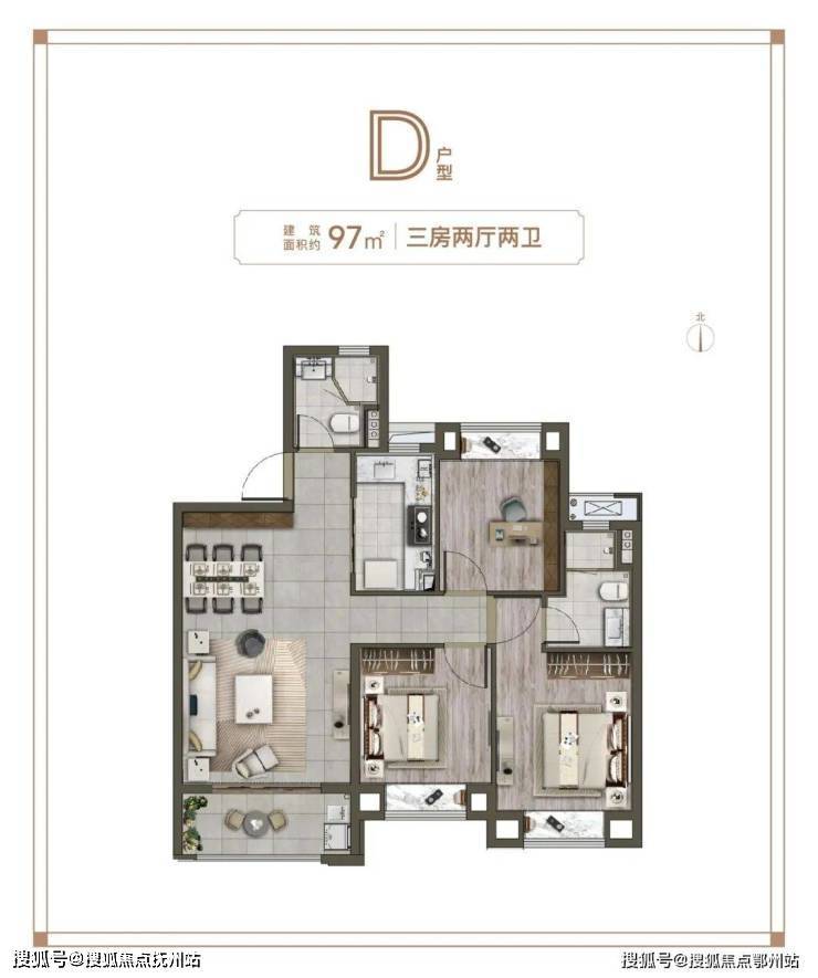 实话讲现在的户型都大同小异,户型图一贴您自己也能看得懂。但项目这个建面约97㎡3房只有去现场体会,才知道它的好。