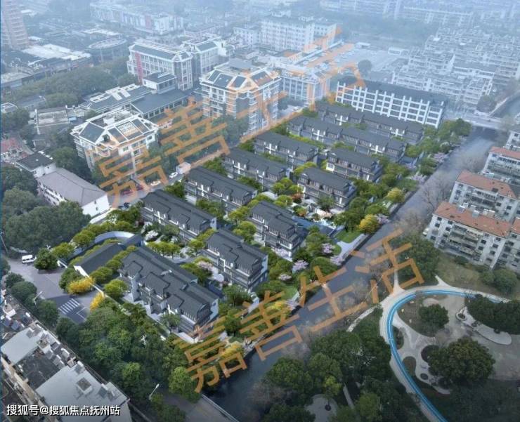 我们先来看项目效果鸟瞰图,整体看上去不显山不露水,但是放大之后你会发现,清一色的新中式风格,全都是一栋栋联排别墅!