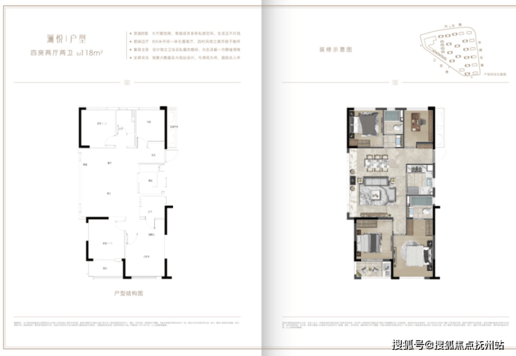 118㎡|澜悦|四房两厅两卫:约118平户型惊艳,全部边套设计。如今市面上的四房如果要追求尺度,基本要130平以上;小面积四房,基本是3+1房设计,数字1大多代表的是像储藏间或衣帽间这样的功能房。但湖沁宸园的118平,是完整四房格局,兼具尺度与功能性。