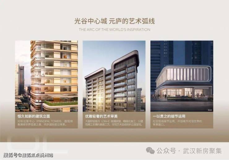 2、艺术弧形立面:国内一线建筑设计机构,詹天佑奖获得者:承构建筑,以伦敦伦金中心为艺术灵感,采用哑光香槟金铝板、大面积玻璃、石材等品质用材,以及弧形转角、凹槽切割等严苛工艺,打造富有豪宅辨识度的高颜值立面,铝板防雨水流挂腐蚀,历久弥新可保障二手房的增值溢价。