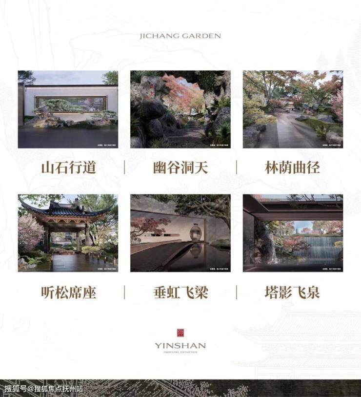 景观组团以寄畅园50景图为原型,在主轴设计中将龙光塔纳入取景框,为每一户私藏山水新赋的畅想与诗意。