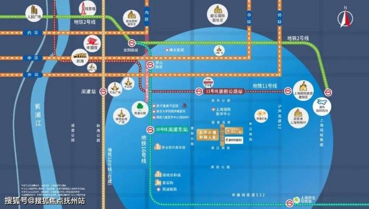 交通上,四条轨交:地铁11号线康新公路站(3公里),16号线周浦东站(2.5公里),18号线周浦站,规划27号线国际医学园站。四条干线:申江路/S32公路/S3公路 连通外环、中环、内环,畅达全城。