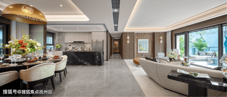皇家级车马厅采用璀璨星空顶配置,墙壁为黑金纹大理石拼接,地面则由非遗“苏扇”花纹石材铺陈,步履间揭开塔尖圈层的优雅生活序章。