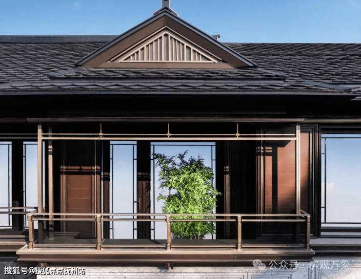 传统中式建筑中常见的挑檐设计被改为平直的檐口,摒弃了繁复的装饰,更符合当代人的审美追求,展现出简约而不简单的设计美感。