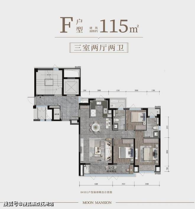建筑面积约115m²F户型,专为“瞰公园”量身定制,南向阳台面宽约7.45米,整个南采光面达到了约10.85米,阳台和主卧飘窗IMAX巨幕观景视野。