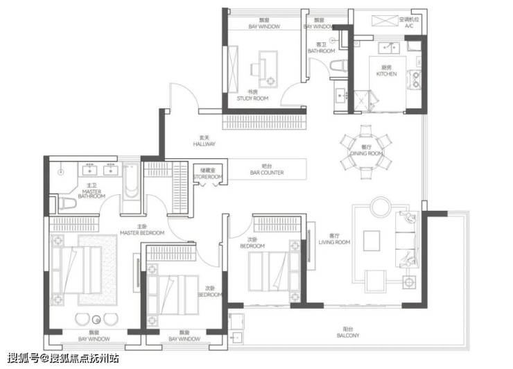 其L型广角阳台,270°超大采光面。