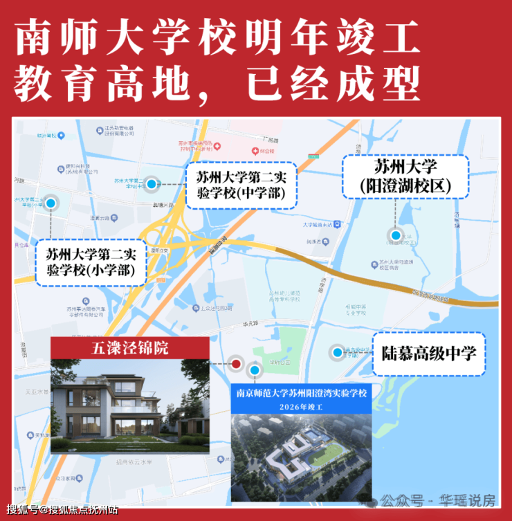 而教育方面,在五潨泾,TOP级教育链就在家门口:苏州大学阳澄湖校区、陆慕高级中学、苏州大学第二实验学校等名校都在项目附近。
