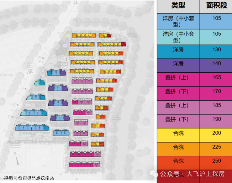 项目规划了9栋6层洋房、9栋4层叠墅、18栋3层滨水合院。打造了稀缺的低密产品:建面约105-140㎡的墅质洋房、建面约165-190㎡的奢阔叠拼以及建面约200-285㎡的滨水联排。