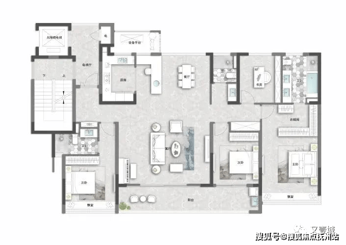 看到这户型的第一时间,想到的就两个字:宽奢。