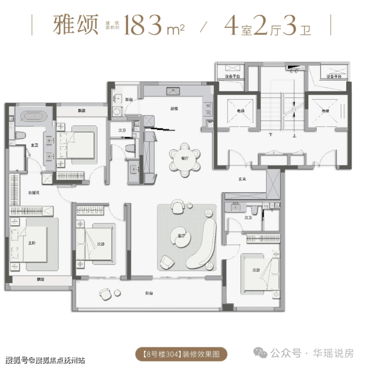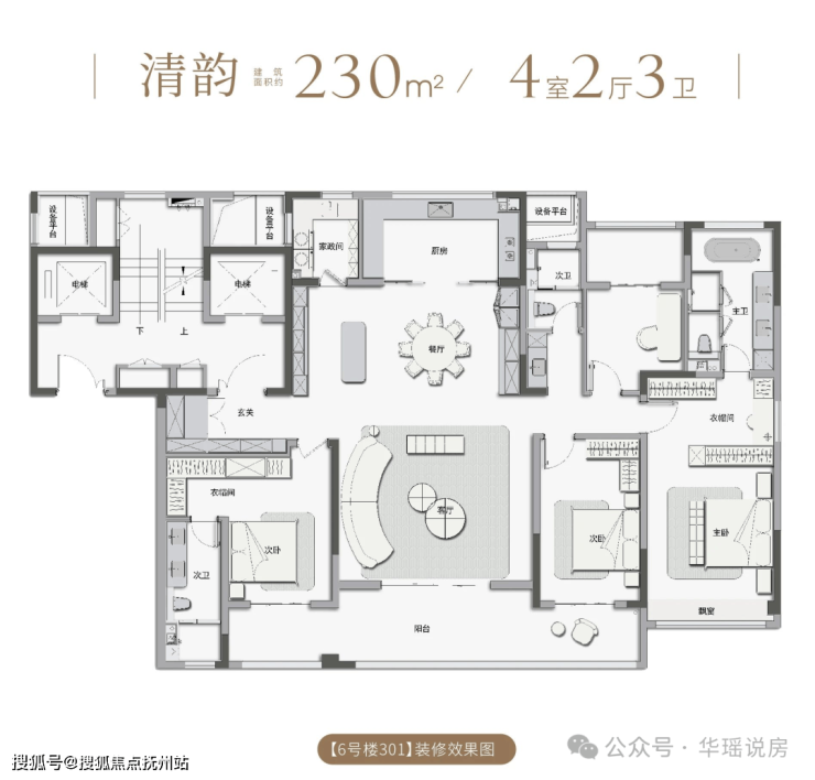 全盘最大户型,尺度进一步升级!南向双套房,并且均为明卫配置;跑道式大阳台是一大亮点,配合北向家政间与生活阳台,做到晾晒与生活区分~