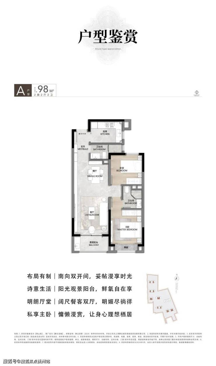 静安玺樾的户型面积段为94-165㎡,涵盖了2-4房的不同户型。其中,建面约98㎡的2房2厅2卫户型设计合理实用,餐厅客厅一线贯通,空间更大更宽广